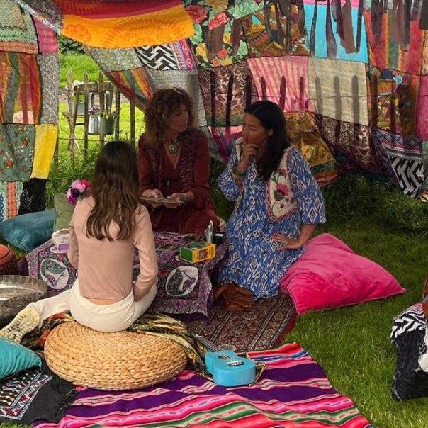 In mijn tent met uitnodigende kussens, doeken, heerlijke geuren en verbonden energie voelt iedereen zich gedragen en welkom.